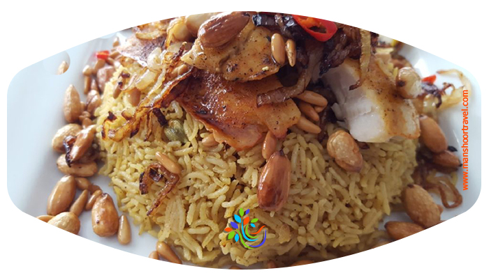 لبنانی ها غذایی دارند که با ماهی تازه درست می شود اما ماهی جزئی از مواد اصلی این غذاست، این غذا با برنج خرد شده درست می شود ، برنج این غذا با خلال بادام و انواع آجیل پخته می شود و روی آن با قطعات ماهی تزیین می گردد.