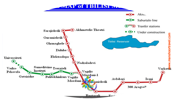 متروی تفلیس در مجموع 2 خط قرمز و سبز داردخط قرمز یا آخمتلی - وارکتلی (Akhmeteli–Varketili Line): خط قرمز متروی تفلیس در کل 16 ایستگاه مختلف دارد و همان طور که نامش نشان می دهد از ایستگاه آخمتلی شروع شده و تا ایستگاه وارکتلی ادامه پیدا می کند. طول این خط 19.6 کیلومتر است و از مرکز شهر نیز عبور می کند. خط سبز یا سوبارتلو (Saburtalo Line): خط سبز تفلیس 6 ایستگاه دارد و به دلیل مسیرش، چندان به کار گردشگران نمی آید. هزینه استفاده از مترو 0.5 لاری گرجستان است. بلیت های تک سفره را می توانید از ایستگاه مترو و با پول نقد تهیه کنید.