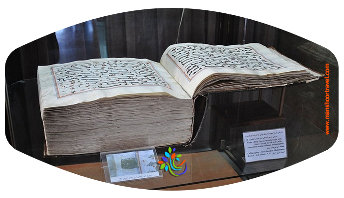 2- مجموعه آبگینه، فرش، نسخ خطی کوفی قرآن