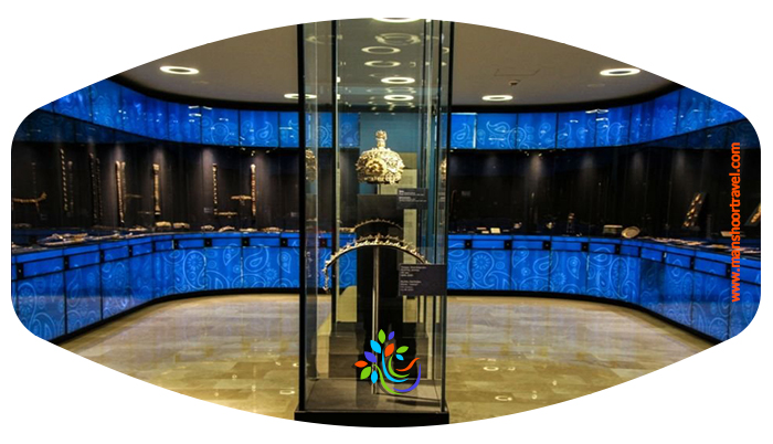 یکی دیگر از قسمت های موزه فرش باکو مجموعه زیور آلات می باشد. این مجموعه شامل 796 شی از قرن نوزدهم تا بیستم میلادی است. البته تعدادی آثار از دوره برنز نیز در این بخش به چشم می خورد. بد نیست بدانید هنر جواهرسازی از باسابقه ترین و پیشرفته ترین هنرهای آذربایجان است که در هر منطقه روش ها و سنت های مخصوص به خود را دارد. در این مجموعه نفیس و جذاب، اقلام ارزشمندی قرار دارند که اغلب آن ها زیورآلات مخصوص بانوان هستند. مجموعه ای از گردنبند، گوشواره، دستبند، بازوبند، پابند در کنار شمشیرها و خنجرها و تسبیح ها به نمایش گذاشته شده اند. بد نیست بدانید قدیمی ترین زیورآلات موزه، مربوط به اواخر هزاره دوم پیش از میلاد و عصر برنز هستند.