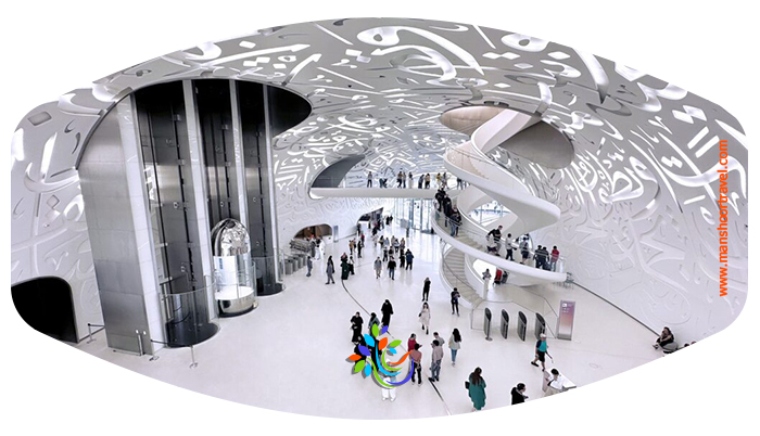 محتوای متنهای خوشنویسی روی دیوارههای موزه آینده دبی چنین است: