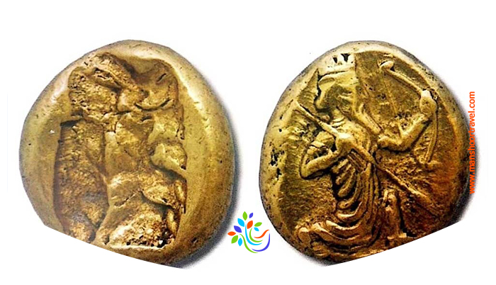 اولین سکه در جهان اولین سکه حقیقی بنا به گفته مورخان متعلق به شهر لیدی، پادشاهی باستانی در عصر آهن در غرب آناتولی، بوده است. قدیمیترین سکههای لیدی متعلق به پادشاه ژیک بود که بهصورت قطعه ضخیم و نامنظم الکتروم (مخلوط طلا و نقره) با شیارهای موازی بر روی آن ساخته میشده. اولین سکه استاندارد (کرزوئید) با طرح نیمتنه گاومیش و شیر، در حال مقابله با یکدیگرند که در پشت آن نیز دو مربع فرورفته وجود دارد. سکههای اسکندر این سکهها، ترکیب تمدنهای ایران و یونان را نشان میدهد. تعدادی از سکههای این دوران در کشور یونان ضرب شده و طرح و نقشهای روی آنها بسیار هنرمندانه و ظریف است.