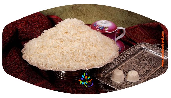 پشمک، یک سوغات خوشمزه و ساده است که تنها با 3 ماده اولیه روغن، آرد سفید و شکر و طعم دهنده جدا نشدنی شیرینی های یزد یعنی هل تهیه می شود. پشمک یزدی مثل پشمک هایی که در پارک ها و شهربازی ها میبینیم نیست و هیچ جای دنیا هم نمی توانید نمونه اش را پیدا کنید. پشمک خوردن آداب خود را دارد که برای توریست هایی که از این شهر بازدید می کنند بسیار جذاب است. یزدی ها پشمک را ابتدا باید داخل استکان کوچک می گذارند و به شکل لقمه ای درآورند و سپس با نوشیدنی مثل چای نوش جان می کنند.