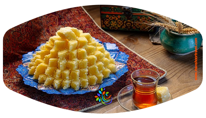 یکی از خوشمزه ترین کیک های سنتی ایرانی کیک یزدی است که آرد، شیر، شکر، تخم مرغ، هل، زعفران و ... مواد اولیه آن هستند. این کیک به عنوان شیرینی نذری در اعیاد و سوگواری ها در سراسر شهر یزد پخش می شود.